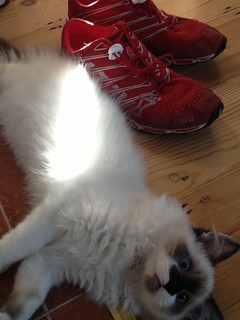 In the absence of photos from today's activity, I thought I'd leave you with a photo of our cat, Louis, shortly after he'd been nibbling my running shoes...