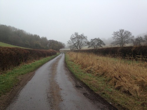 Well, that was fun! At last I managed to do my planned Pednor Loop circuit. The weather wasn't especially encouraging when I set off at about 9am, with fog and a little bit of light drizzle. As it turned out, though, it was perfect: rather spectacular, in a quintessentially English way, and the moisture kept me cool as I ran. I managed to get a few pics on my phone as I ran, to get a sense for how things were looking.
