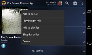 After I had played some music, I noticed that the system had scattered some juicy-looking auto-generated playlists around the catalogue; soon after this, I realised that I could get the system to queue up a selection of music, known as an "instant mix", based on any track as a seed. This is really sweet, especially for a no-effort answer!