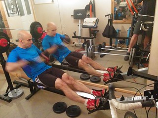Then - finally, after jobs were done - to the Janathon highlight of the day: a rowing 10k relay, with Holger, on a Concept2 rowing machine!