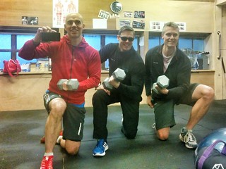 Today's session was also notable for being the first one, following the so-called "Great Mirror Incident", when a large mirror has been available in the gym. It would therefore have been churlish not to have used it to take some ridiculous selfie-style shots of the three of us (me, Darrell and Holger) "in situ"...